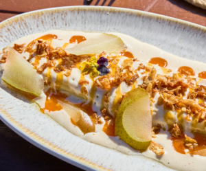 Gambón, sepia y el toque crujiente del rabanito sobre una cremosa base